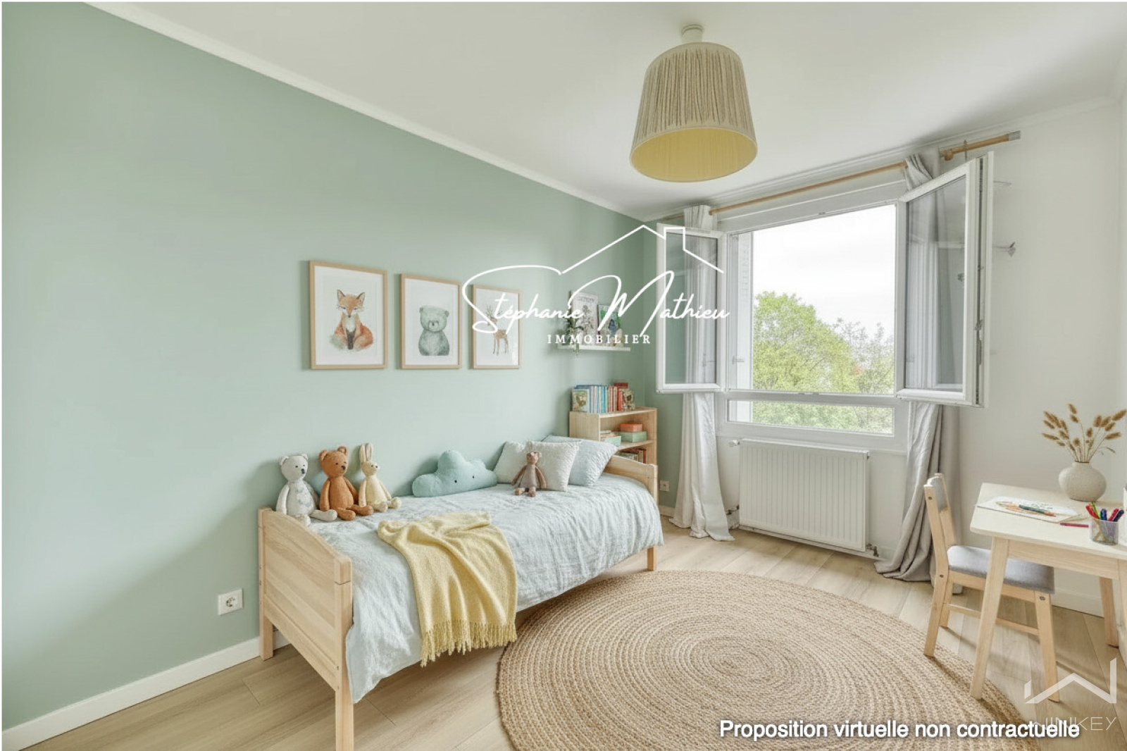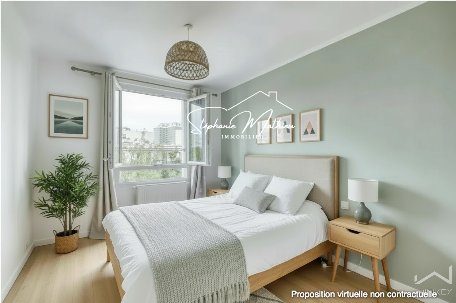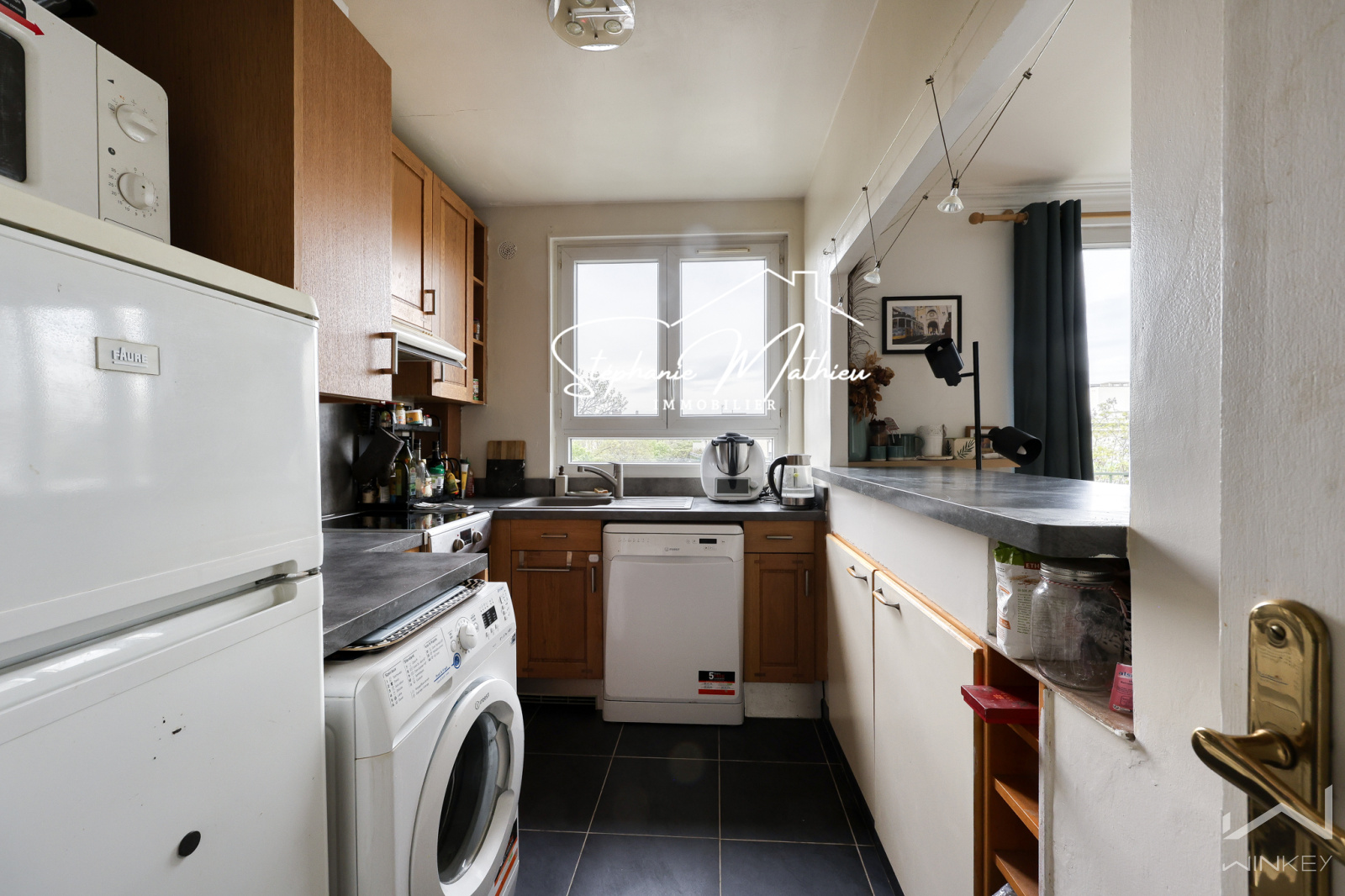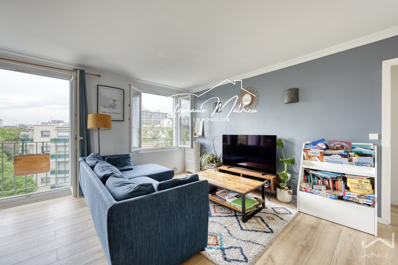 Il se compose d’une cuisine ouverte sur un séjour / salle à manger spacieux et lumineux communiquant sur un balconnet côté parc (avec possibilité d’aménager une 3ᵉ chambre ou un bureau), de deux chambres, d’une salle de bains avec baignoire et WCs.
