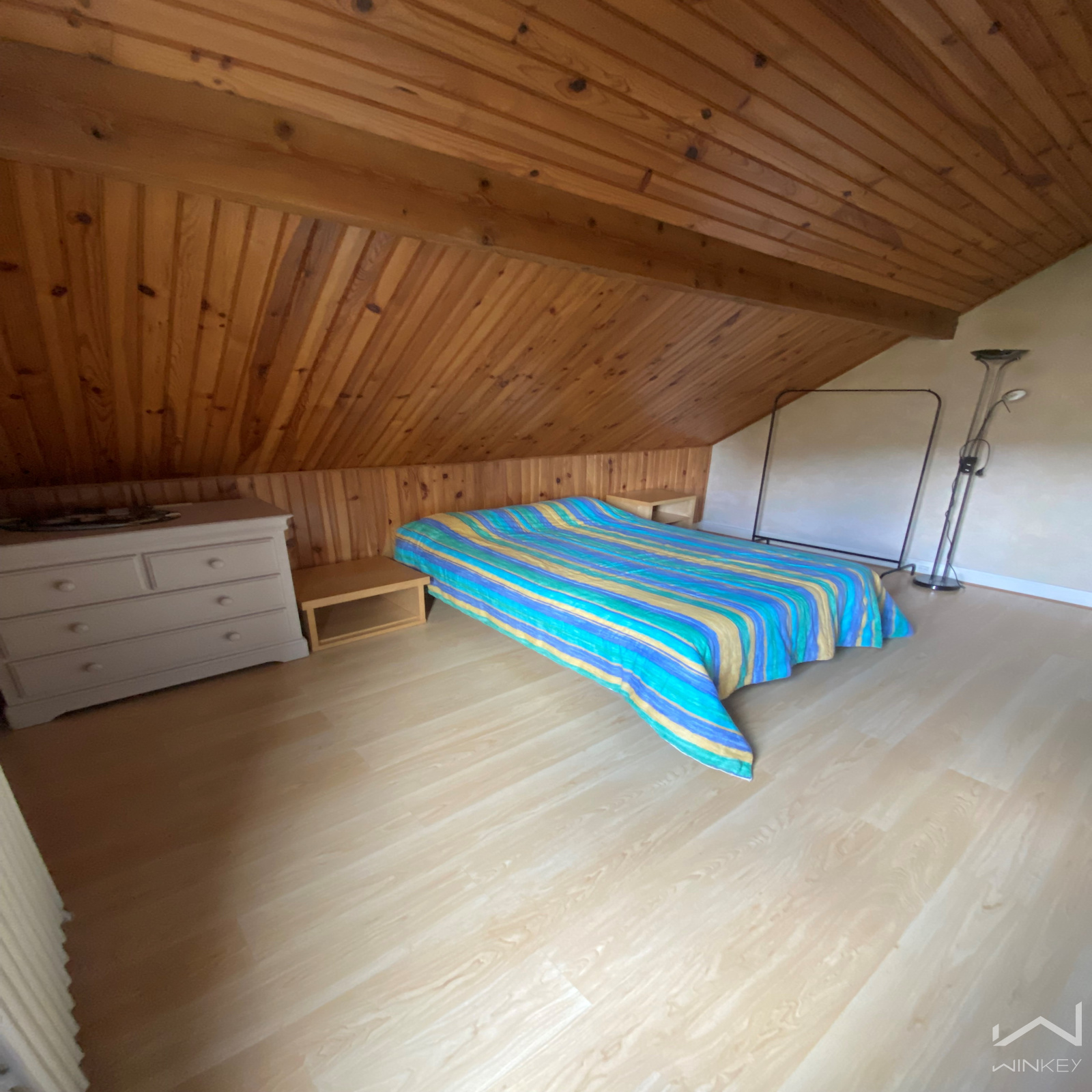 Dès l'entrée, vous serez séduit par un spacieux salon/séjour lumineux de 21 m², une cuisine équipée moderne, ainsi qu'une chambre de 12 m². Une salle de bain avec baignoire et des WC séparés complètent le rez-de-chaussée.