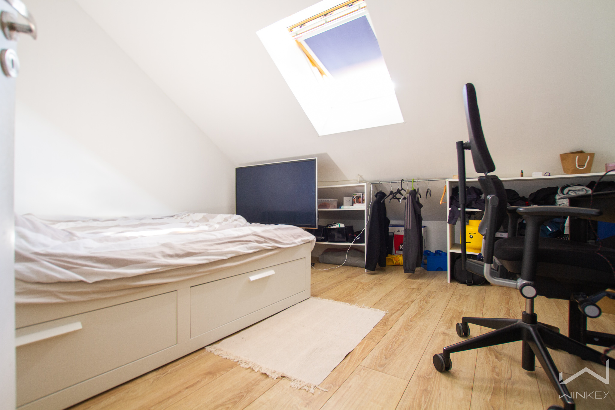 Le deuxième étage accueille une troisième chambre ainsi qu’un vaste espace modulable, offrant la possibilité d’aménager une quatrième chambre selon les besoins et un WC.