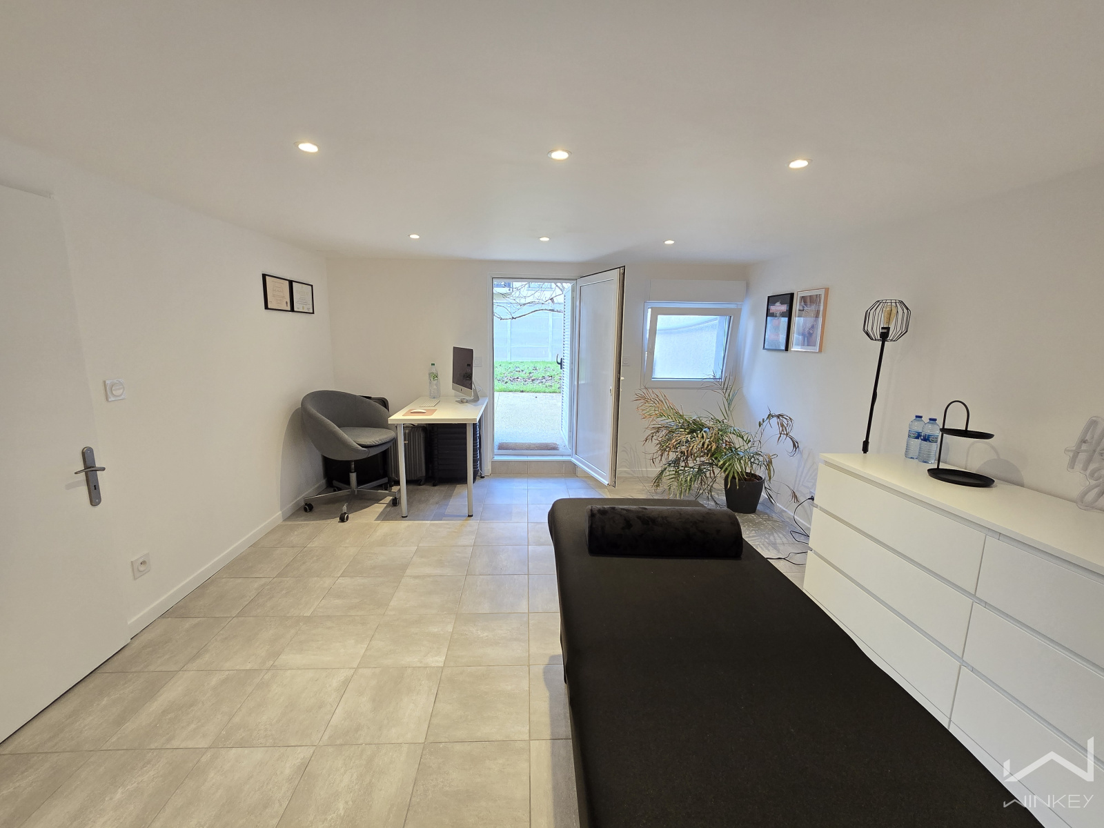 Rez-de-chaussée aménagé:Un espace de 17 m², actuellement aménagé en bureau, pouvant être transformé en studio indépendant. Une buanderie et un cellier, offrant un espace de rangement pratique. Un WC indépendant. Annexes : Un garage pour sécuriser votre véhicule et un atelier, parfait pour les amateurs de bricolage ou de création.
