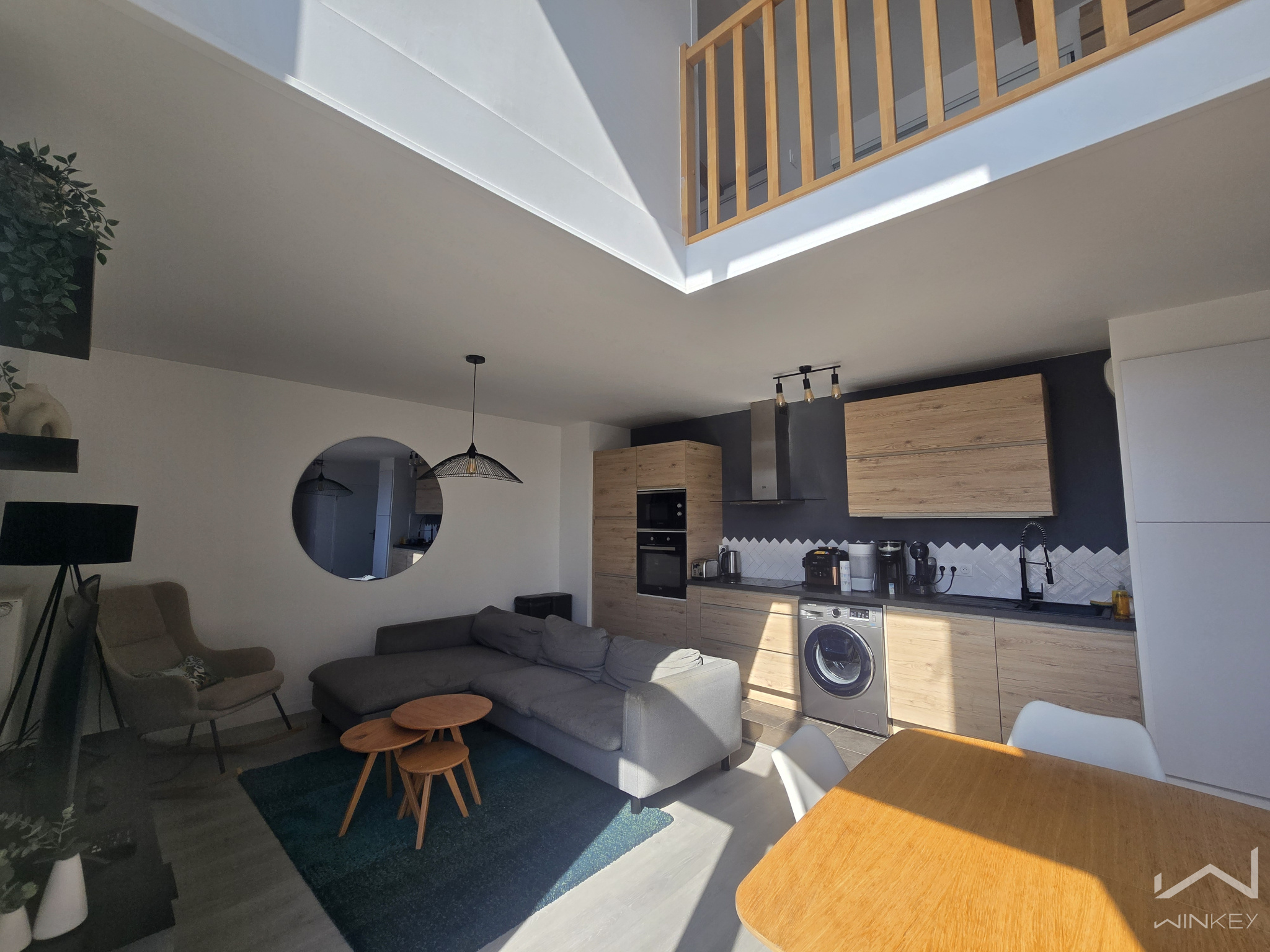 Le grand séjour de 33 m², baigné de lumière, offre un bel espace de vie avec cuisine équipée, une salle d'eau avec wc, un debarras et deux balcons pour profiter pleinement de l’extérieur. À l’étage, vous découvrirez une chambre cosy, un espace bureau ainsi que des rangements astucieux sous toit. Possibilité d’acquérir une place de parking en sus.