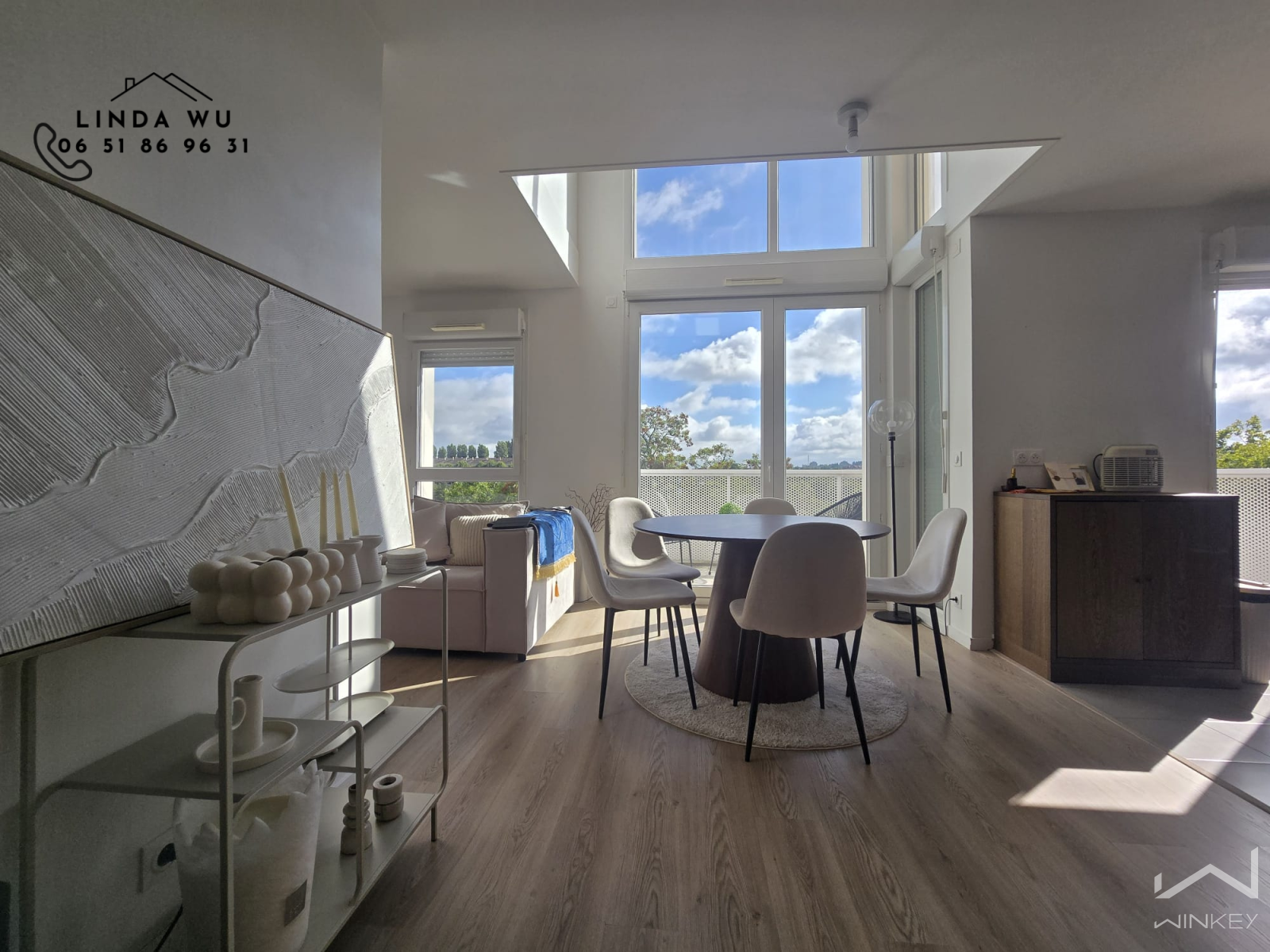Linda WU de WINKEY IMMOBILIER vous propose en exclusivité ce magnifique duplex de 84 m² Carrez, situé dans une résidence basse consommation de 2019. Niché dans un environnement paisible à Villeneuve-le-Roi, il bénéficie d’une situation idéale : la Seine en panorama direct, la nature à deux pas et Paris accessible en seulement 10 minutes par le RER C (Bibliothèque François Mitterrand).