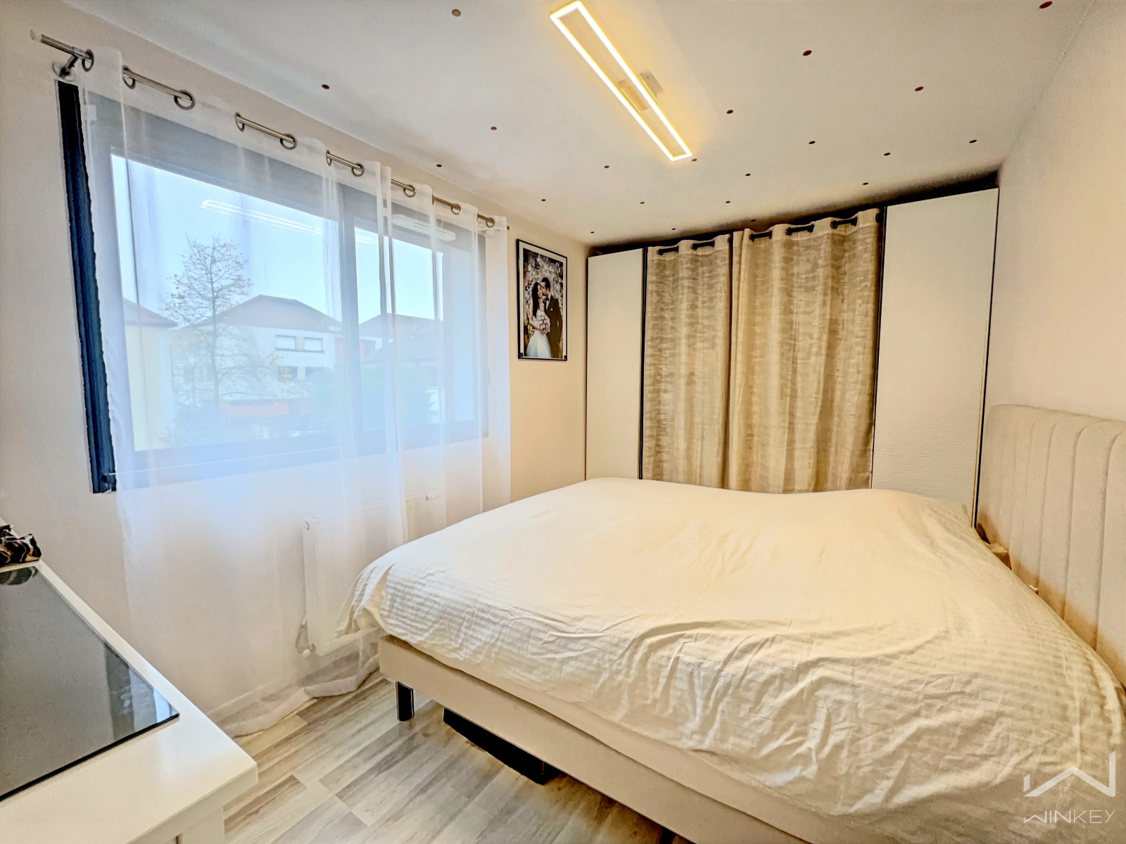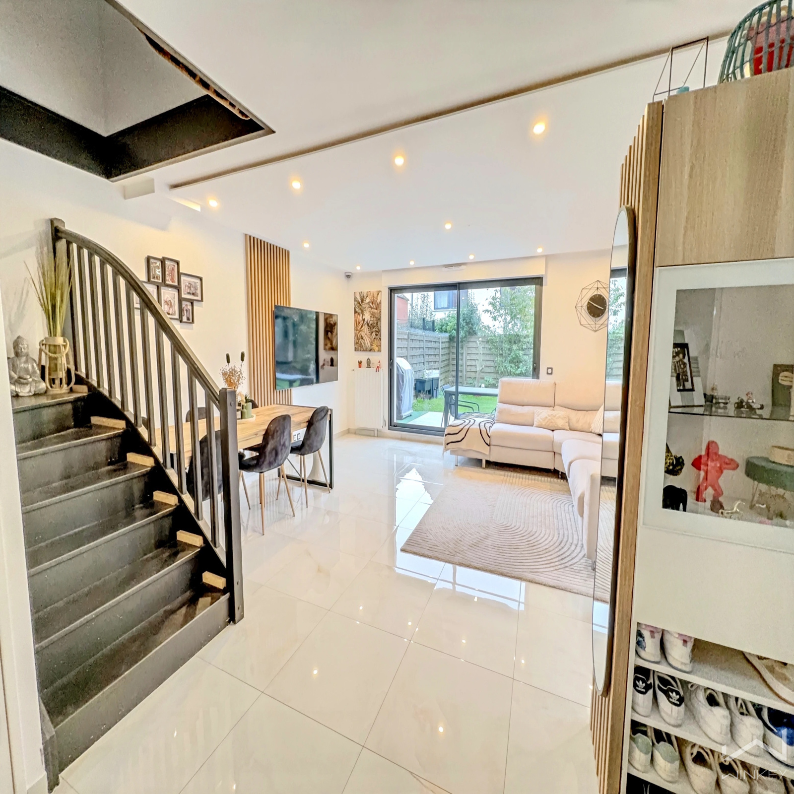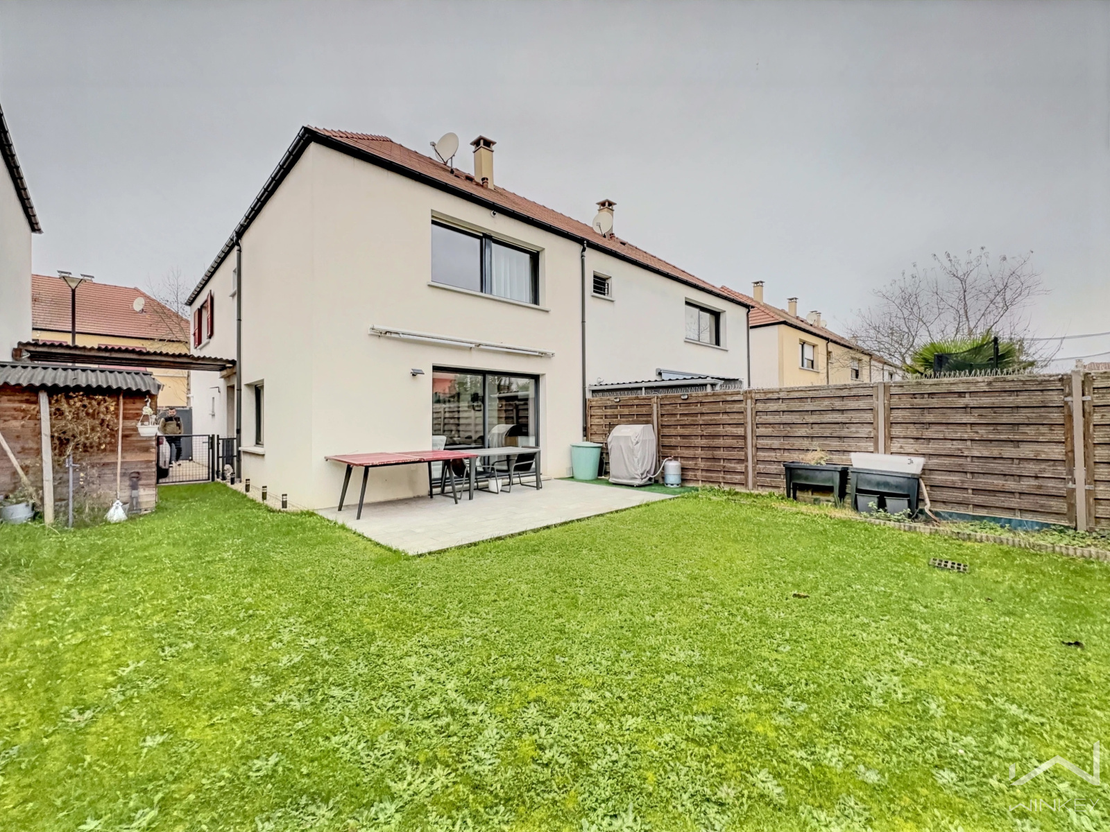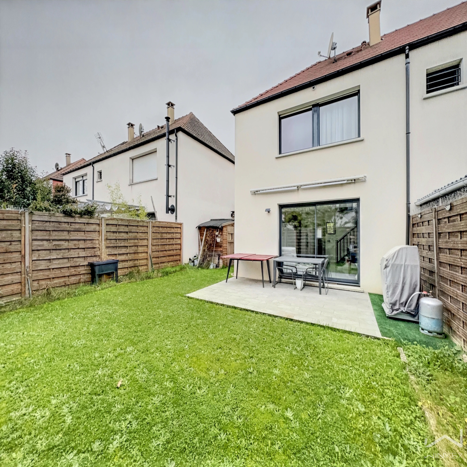 Proche des commerces, elle vous séduira par la qualité de son quartier et de ses prestations (huisserie en aluminium, double vitrage, stores motorisés, volets en aluminium neufs, chauffage individuel gaz, magnifique carrelage dans le séjour...). possibilité de garer une 2ème voiture dans la propriété, elle sera parfaite au quotidien pour toute la famille.