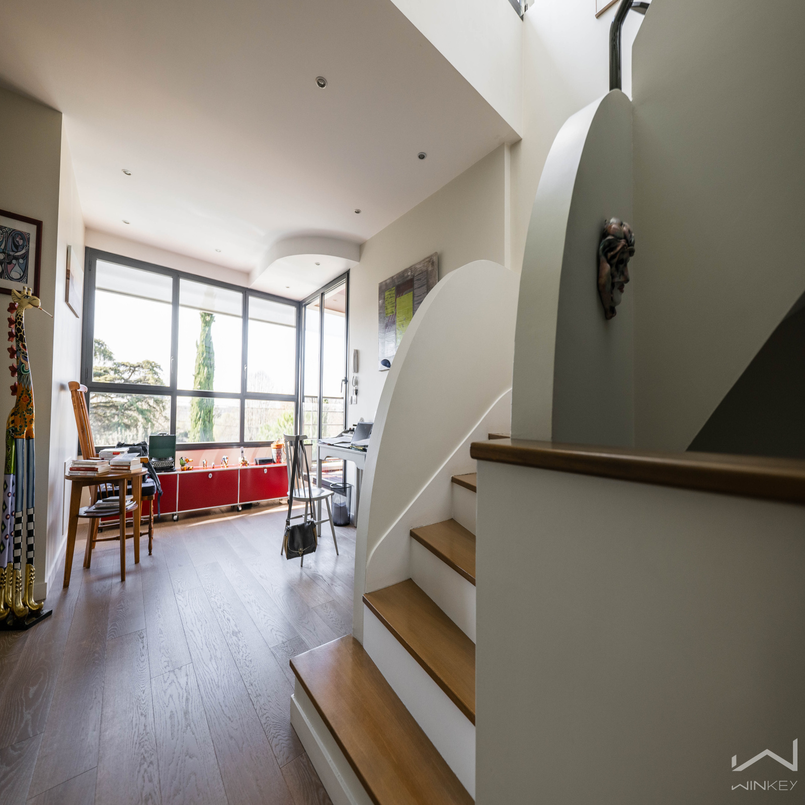 Une fois à l’intérieur, l’entrée vous dirigera vers l’escalier ou l’ascenseur pour accéder aux différents niveaux de la maison.