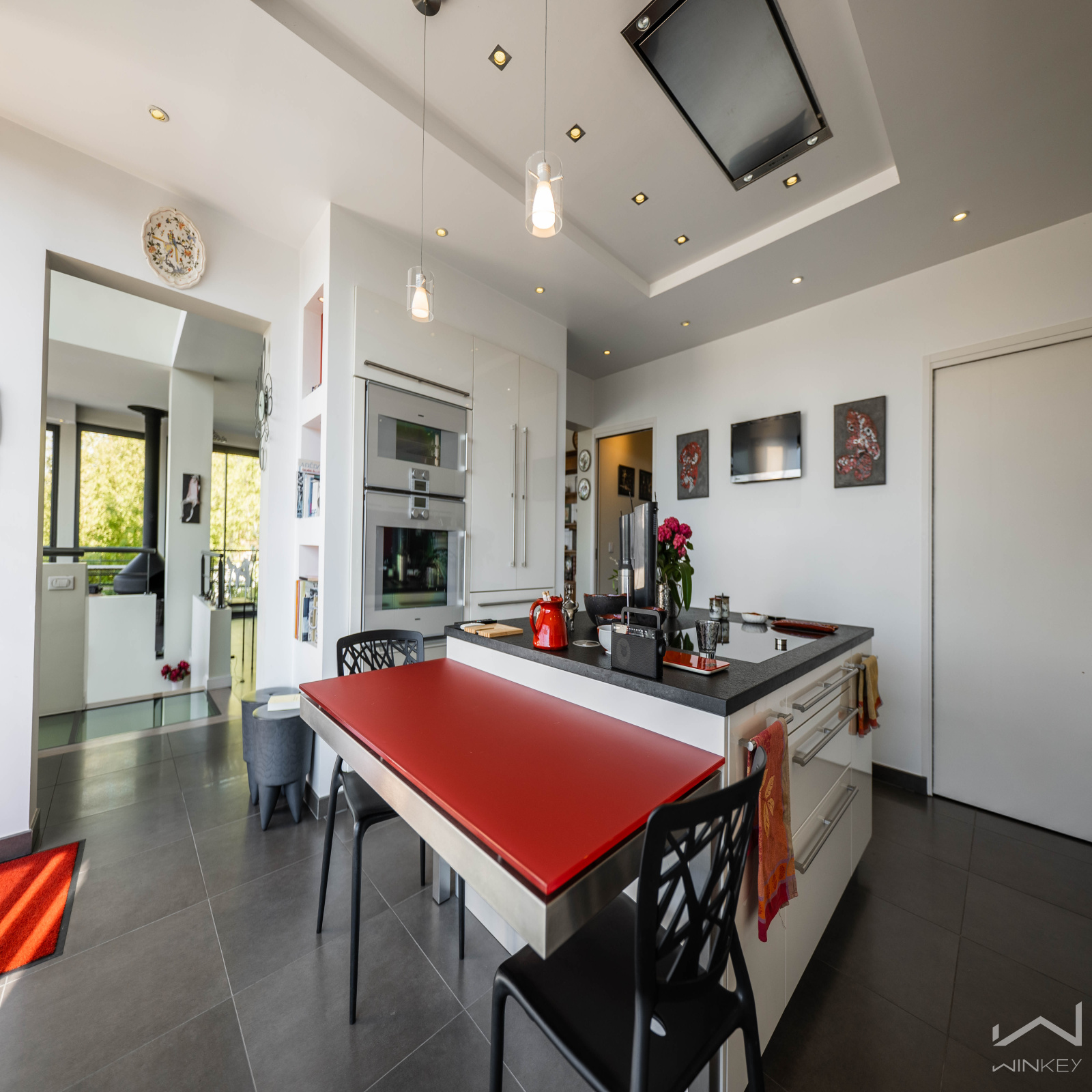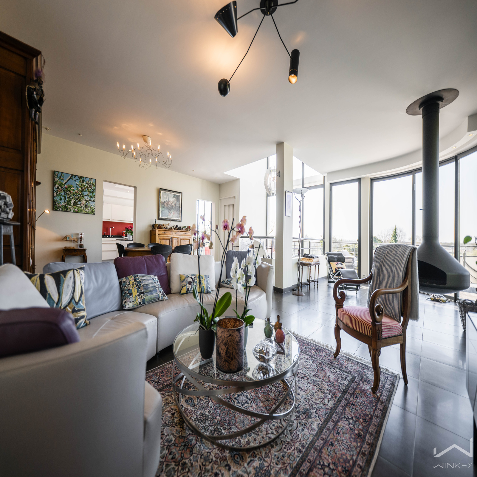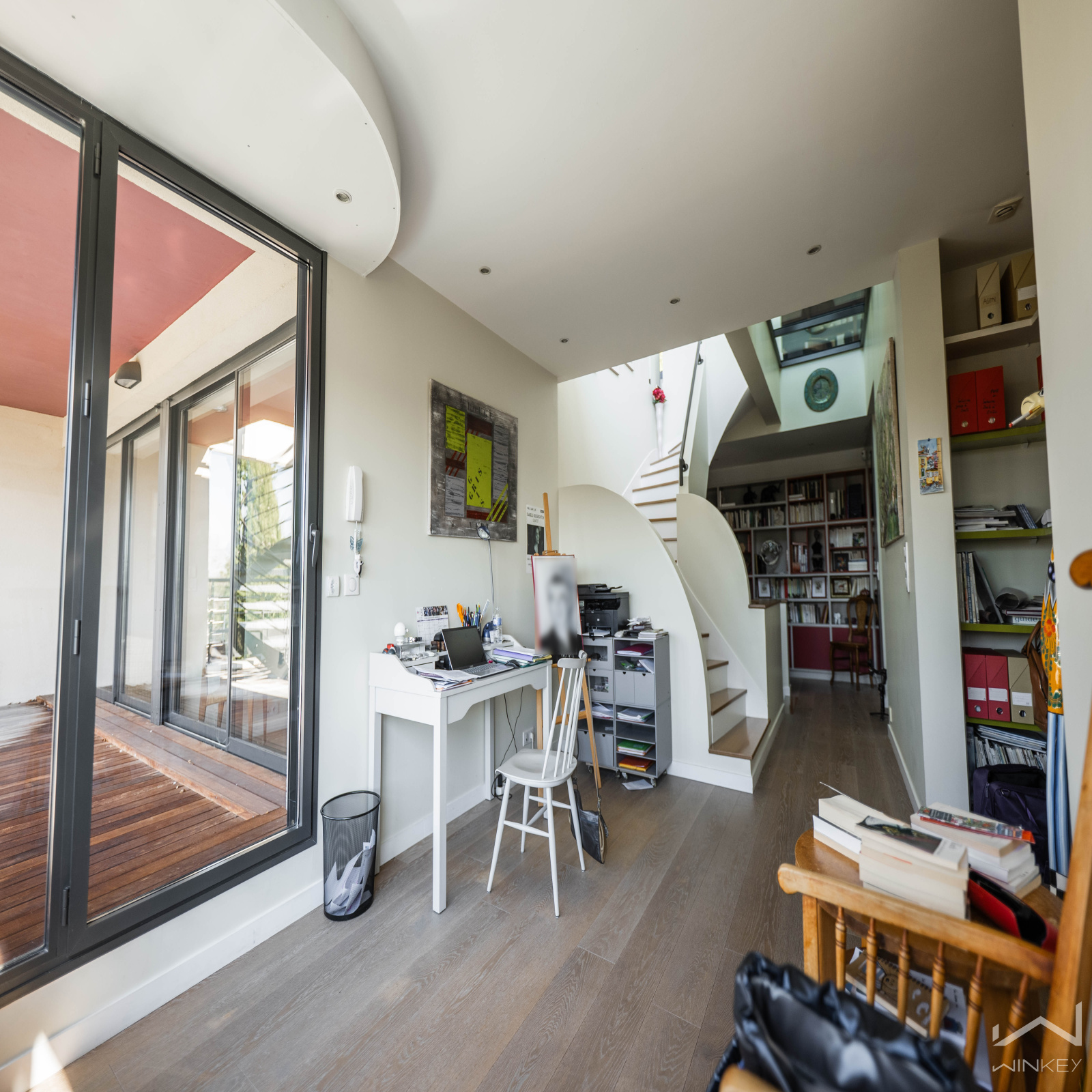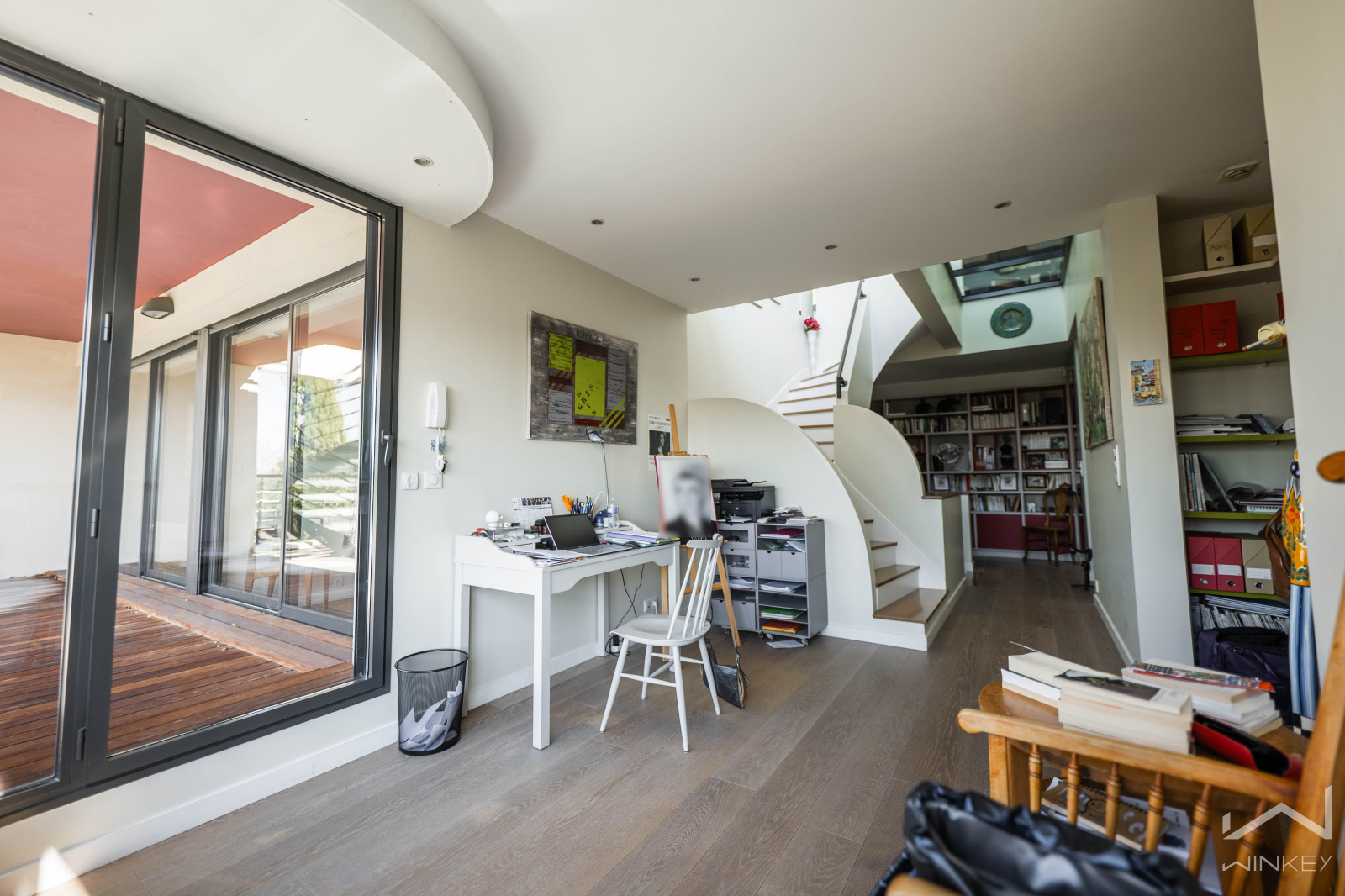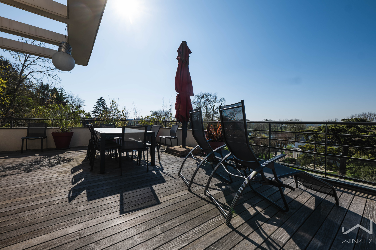 Pour l’espace de vie, vous bénéficierez d’un triple séjour desservant une belle cuisine entièrement équipée , une arrière cuisine, un toilette et une magnifique terrasse qui vous permettra de profiter avec vos proches d’un endroit calme, vert, sans vis à vis et d’une vue exceptionnelle sur la Seine!