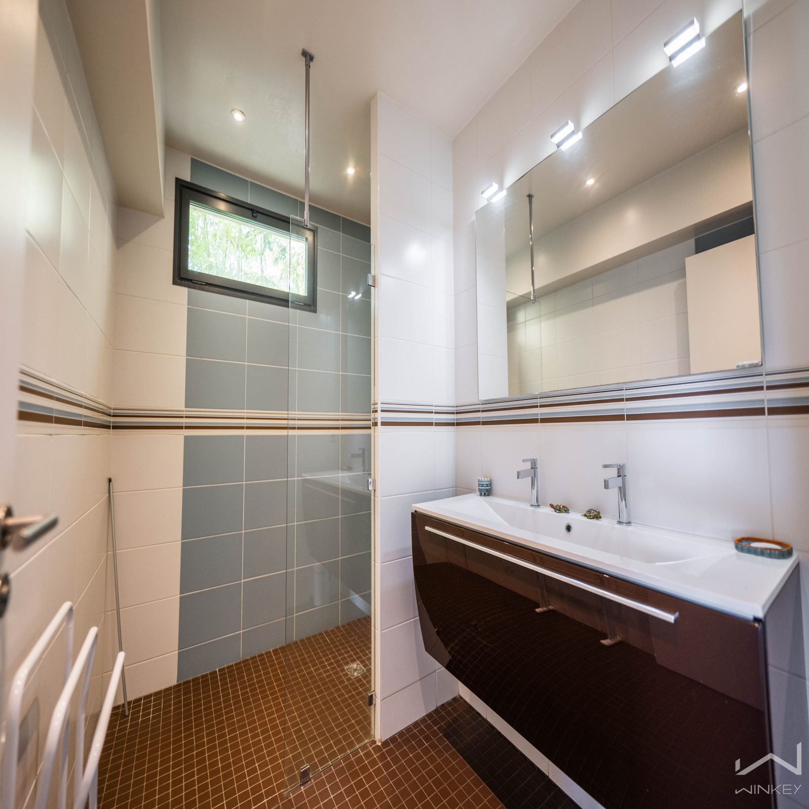 Pour le coin nuit ou travail, vous trouverez 3 belles chambres (dont une suite parentale avec dressing, toilette et salle de bain) toutes avec une terrasse, une grande salle de douche et un toilette indépendant pour les enfants ou les invités, ainsi qu’un bel espace bureau.