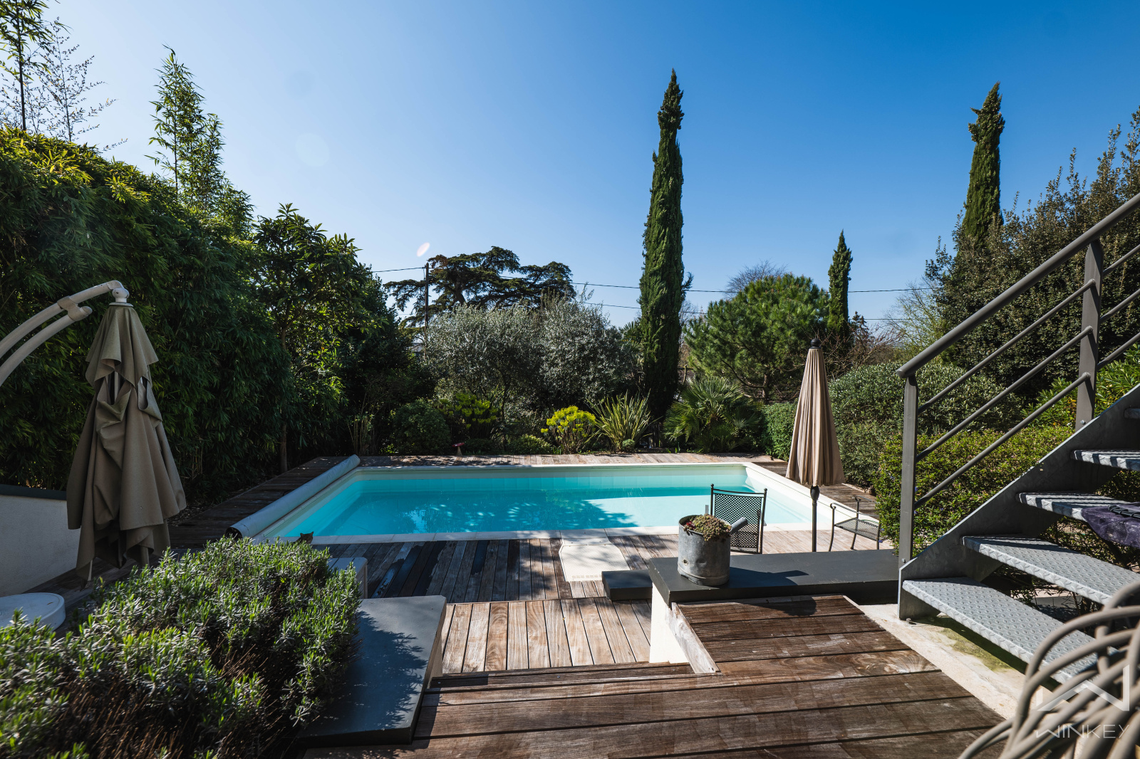 Vous commencerez votre visite en accédant à la maison par un très beau jardin paysager, avec piscine chauffée.