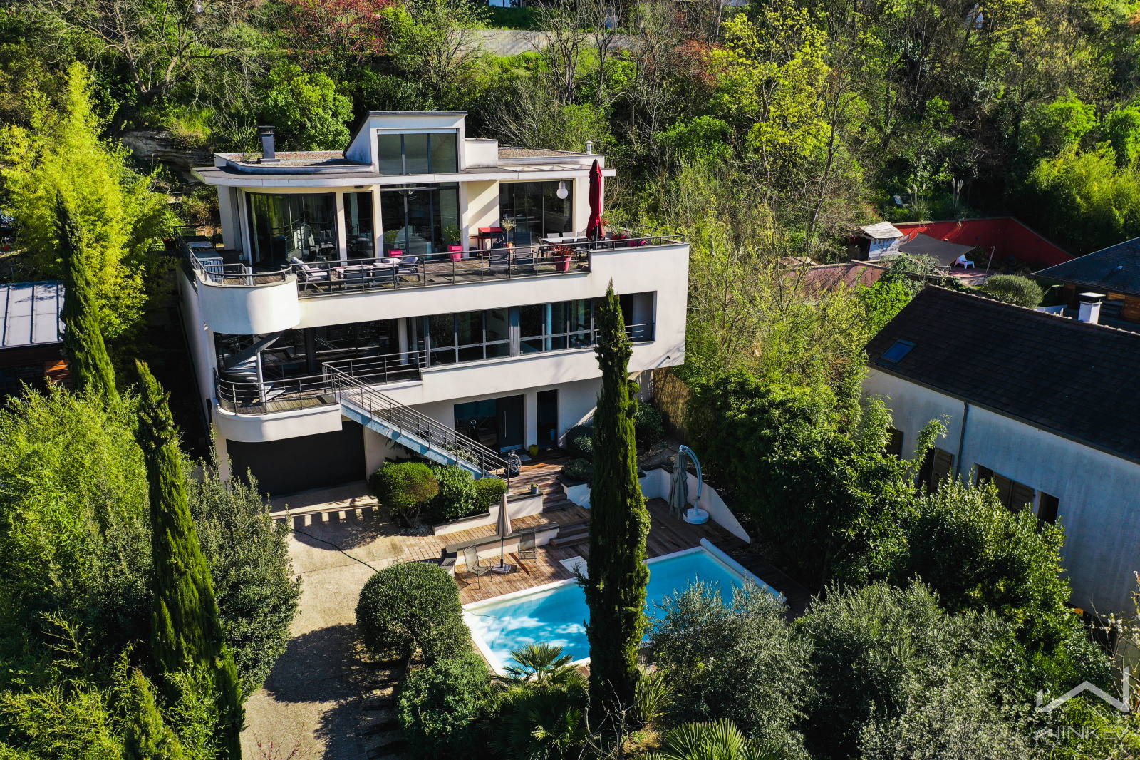 Un garage, une cave à vin, une pièce technique(piscine, central d’aspiration, vmc double flux, ballon de récupération d’eau souterraine pour les toilettes ainsi que le chauffage au sol par aquathermie, arrosage automatique).
