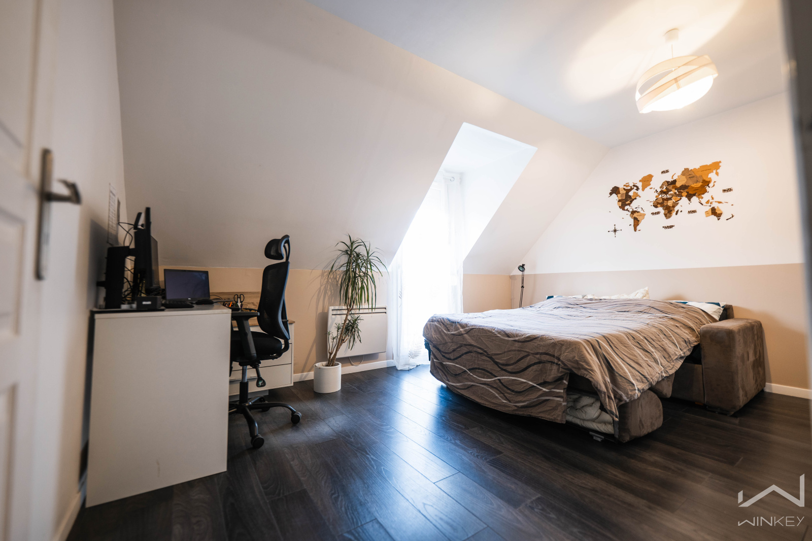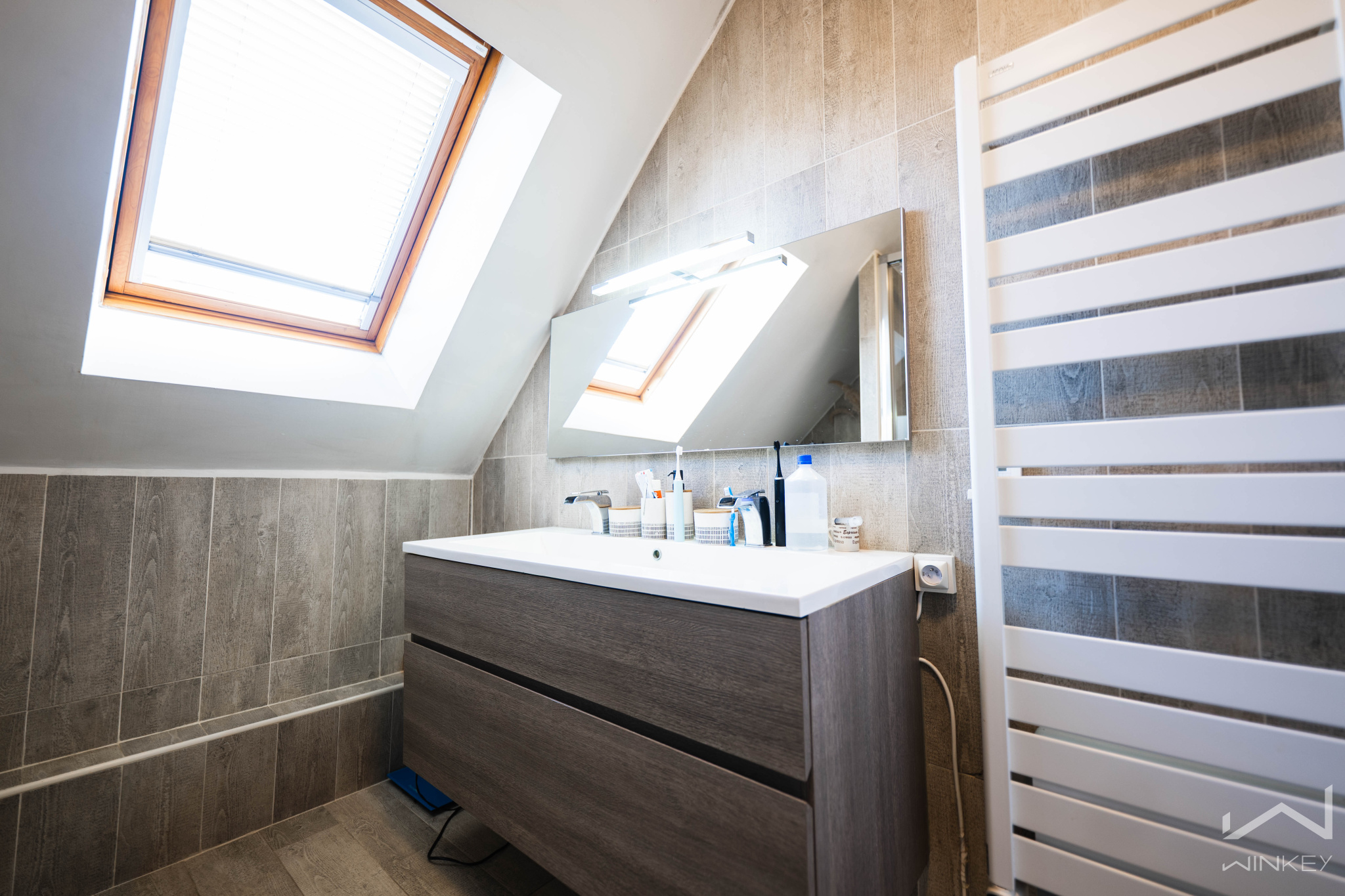 À l’étage, la maison propose trois chambres confortables, une salle d’eau moderne ainsi qu’un second WC, apportant un vrai confort au quotidien.