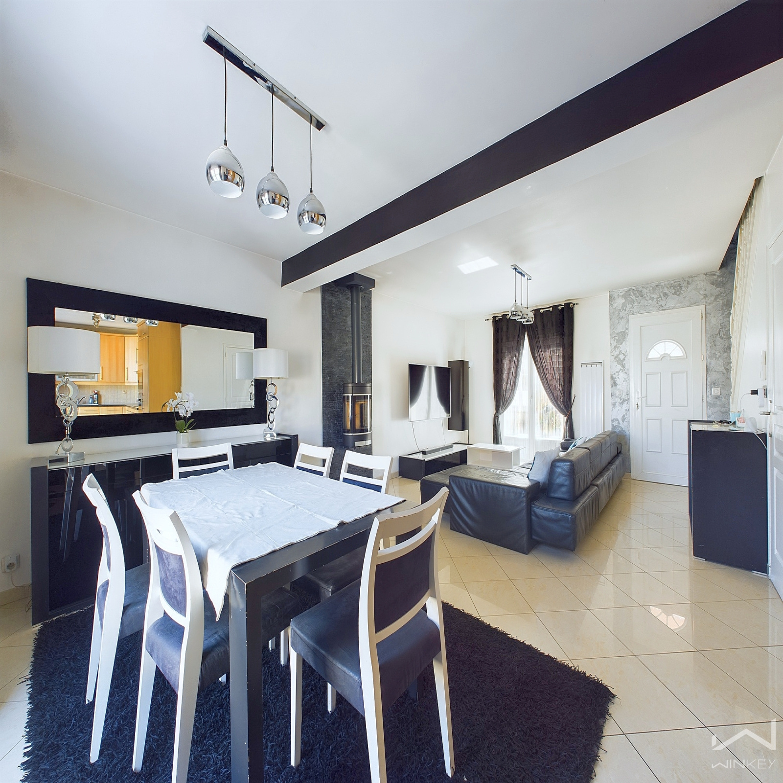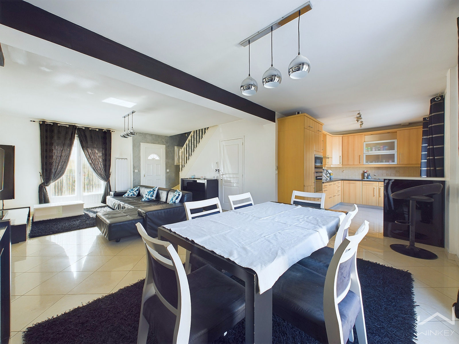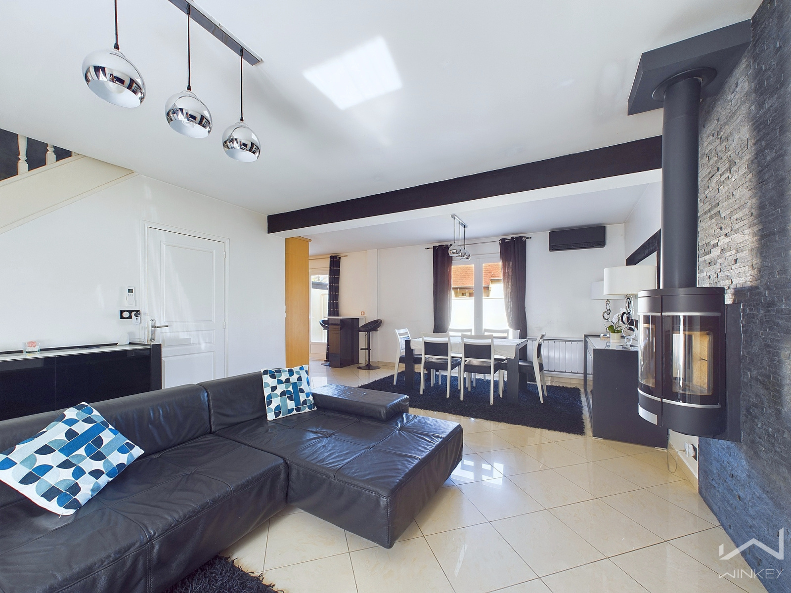 Maison constituée d'un espace cuisine entièrement équipée, un double séjour, une salle de bain et 3 chambres spacieuses. Sa superficie intérieure mesure environ 117m², ou 85.79m² en loi Carrez. À l'extérieur, vous disposerez d'une belle terrasse avec atelier et également de deux emplacement de parking éxterieur ainsi que d'un garage.