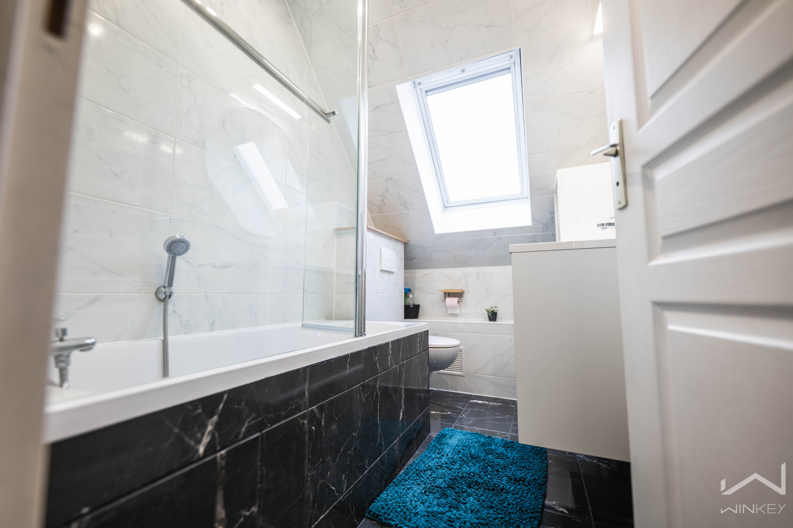 Au dernier niveau, les combles aménagés offrent un espace supplémentaire idéal pour un bureau, une salle de jeux pour enfants ou un coin détente selon vos besoins.