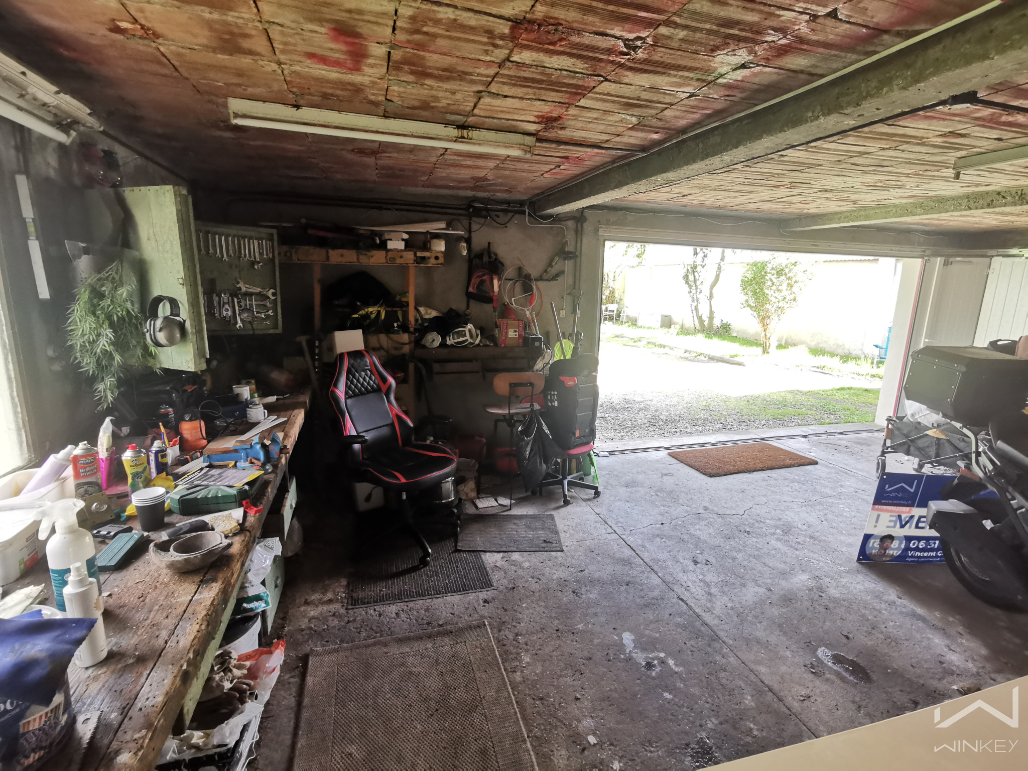 Le portail donne via une allée à un beau Garage/ Atelier de 40 m2, construction solide en béton, avec toiture terrasse, existante.