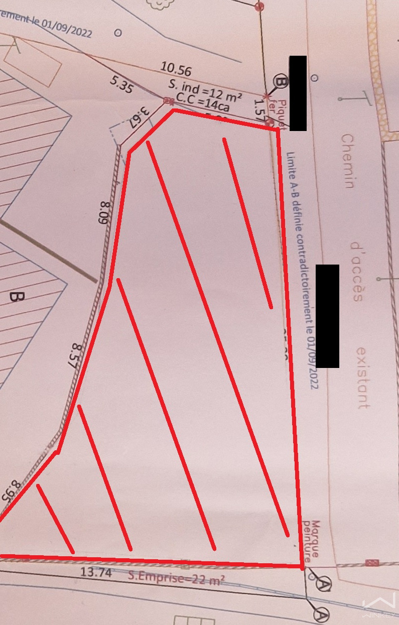 Parcelle bornée et cadastrée