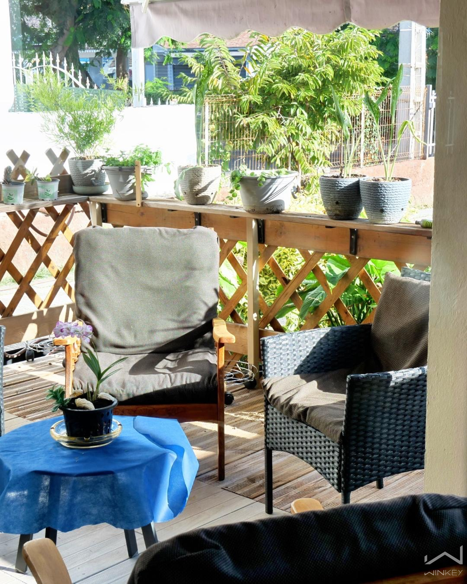 À l'étage, l'appartement T4 indépendant propose trois chambres spacieuses et une varangue de 23 m² avec une vue dégagée. Cet espace est actuellement exploité en location saisonnière avec une excellente rentabilité de 6%, un chiffre remarquable pour Saint-Gilles. Cette configuration permet d'envisager sereinement un autofinancement partiel ou de profiter d'une grande demeure familiale en réunissant les deux niveaux.