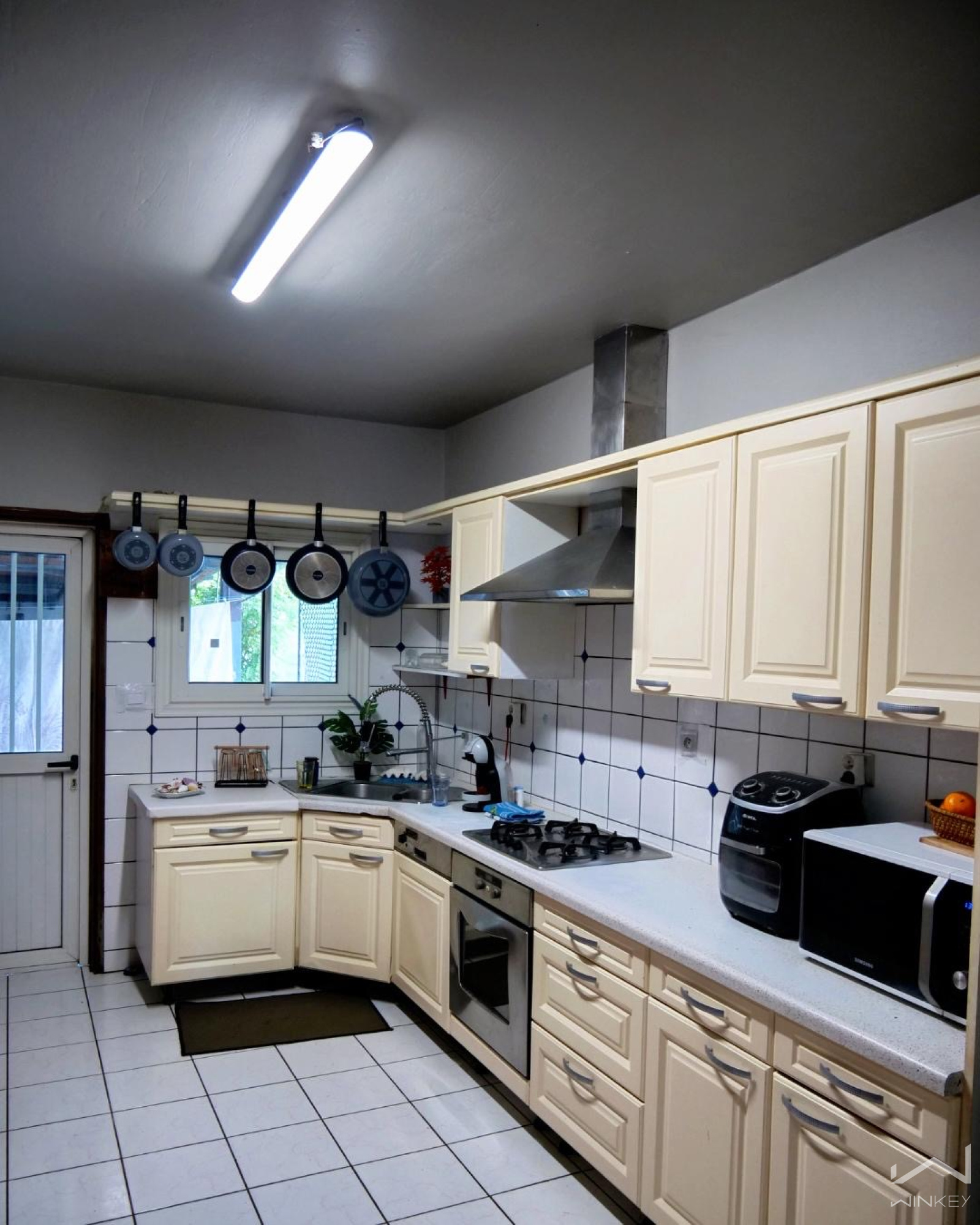 La maison s'articule autour de deux espaces indépendants offrant une grande flexibilité. Le rez-de-chaussée se compose d'une cuisine fermée donnant sur l'extérieur,d’un vaste séjour de 40 m² prolongé par d'immenses varangues à l’avant comme à l’arrière, totalisant plus de 60 m² d'espaces de vie extérieurs. Si l'intérieur nécessite une mise au goût du jour pour exploiter tout son potentiel, les volumes sont sains et généreux. Le jardin dispose également d'un espace de 34 m² déjà prêt à accueillir une piscine (voir projection sur photo) ou un aménagement extérieur sur mesure, un atout majeur dans ce secteur hyper-centre.